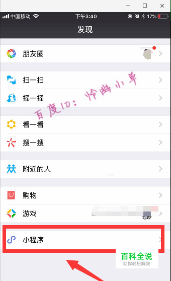 打开微信,点击“发现”,然后我们再继续点击这里面的“小程序。