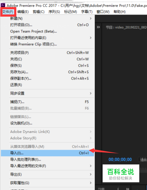 首先打开pr,导入视频素材