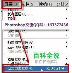 执行“图层——创建剪贴蒙版”,或者按下快捷键ALT+CTRL+G,即可创建剪贴蒙版。