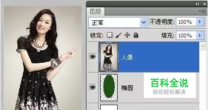 下面我们以一个案例来介绍ps创建剪贴蒙版的方法。下面所示:上面一个图层是人像图层,下面一个图层是绘制的一个椭圆。