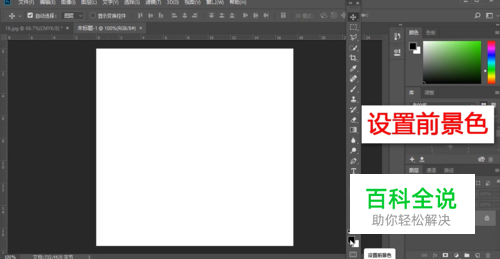 左键单击工具箱下方的设置背景色,选择一种翠绿色,然后点击确定。