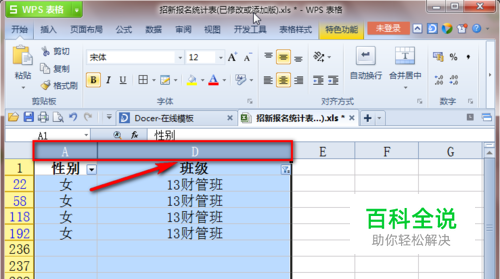我们选中A,D列,如下:
