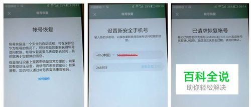 点击 开始恢复->输入新的手机号或邮箱地址,点击“获取验证码”->输入向新安全手机号或安全邮箱发送的安全验证-> 下一步-> 帐号服务器已向您的华为帐号发送帐号恢复确认信息,请及时确认(此信息3天后过期)。