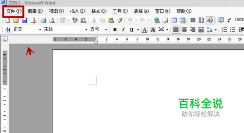 在Microsoft Office Word 2003中单击文件