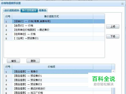 在辉煌中系统维护-价格体系-价格设置(顺序),设置价格顺序,如下图:
