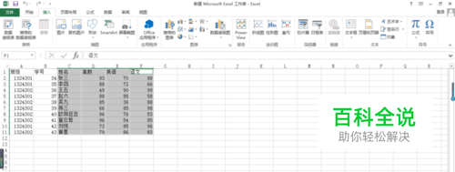 按住ctrl键,选择你要做成图表的数据的那一行或者那一列。比如我选择姓名,高数,英语,语文这四列。