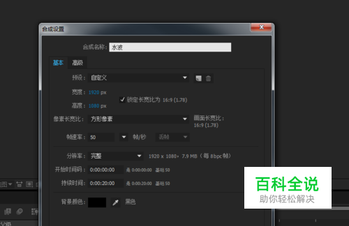 打开AE,新建一个合成,命名为水波
