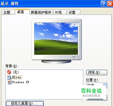 弹出“显示属性”界面,选择“桌面”选项卡下的“自定义桌面”