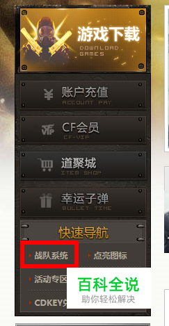 登录CF官网,找到左边栏里的“战队系统”。