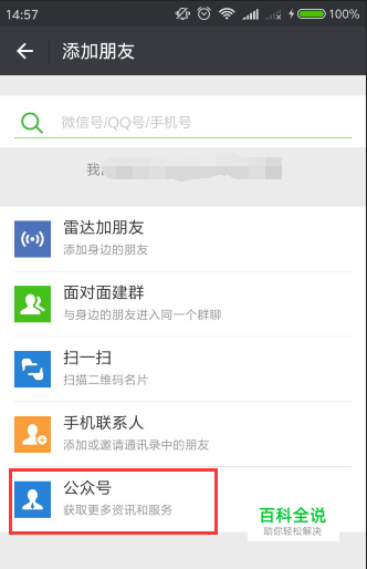 打开微信app,然后点击右上角的加号,在添加朋友的页面中,选择最下方的选项“公众号”