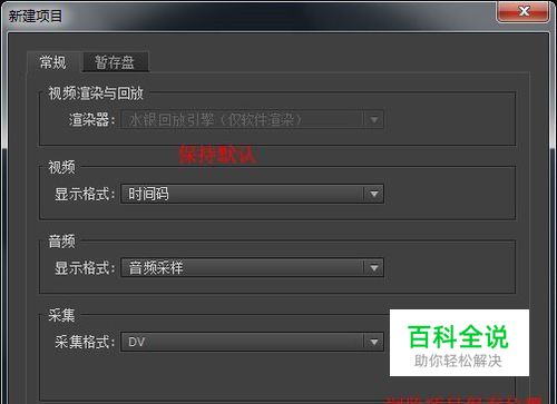 “新建项目”的对话框中,可以更改到时候视频输出的位置,项目名称可以命名。新建的项目的其他设置都不需要改变的,我们只需要重新命名或者更改项目保存的位置就行了。项目的保存位置可以先在这里设置保存的位置,并记住自己保存的位置。