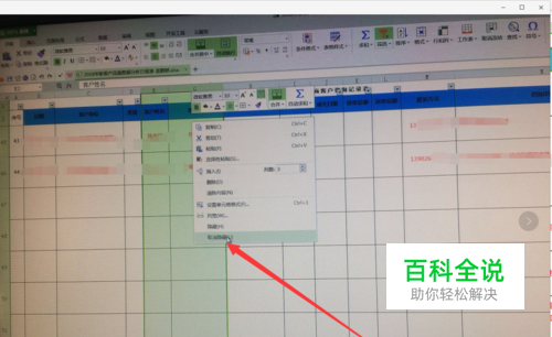 选中相邻的两列后,鼠标右击选中“取消隐藏” 这一步小编的鼠标要操作EXCEL表格,无法截图用手机拍了一张,