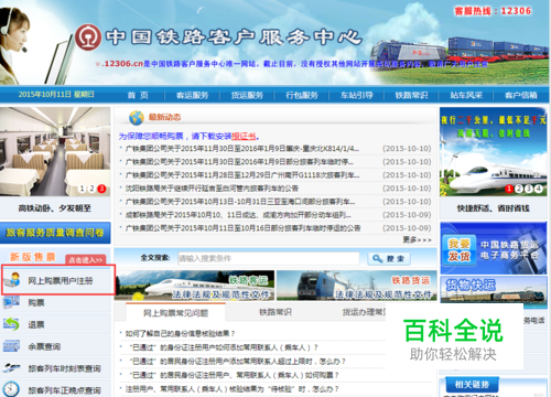 打开12306的官方网站,点击界面的,网上购票用户注册。