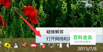 从电脑端找回无线网WiFi密码: 右击任务栏“网络”图标,从弹出的右键菜单中选择“网络和共享中心”项进入。或者通过“控制面板”进入“网络和共享中心”界面。