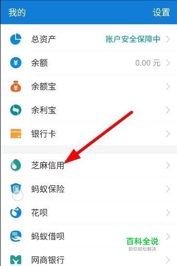如图在芝麻信用界面点击箭头所指的“相互保”。