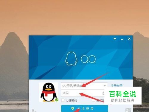 首先在桌面上点击QQ,输入账号和密码然后安全登录,如图