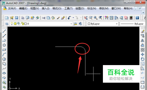 最后,我们依次点选两条相交的直线就可以了,这样就会出现圆弧。关键在于要预先设置圆弧的半径,否则圆角功能是无法出现的。