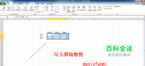 第一步:打开Excel,输入数据。这里是探讨的是光照和PH两因素是否对冬虫夏草子实体长度的作用。