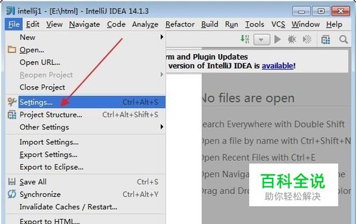 在File菜单下,找到setting,如图中箭头所示,win7下是setting,Mac下是preference