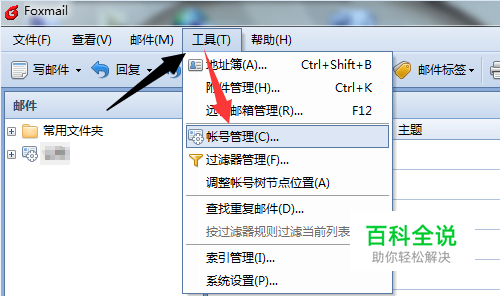 运行Foxmail邮件接收客户端,点击菜单【工具】-【账号管理】新增用户。
