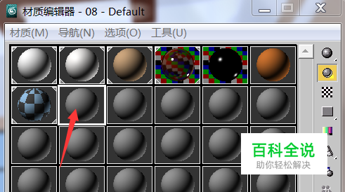 打开max文件,或者新建一个文件,找到面板上面的有四个球的图标,就是材质的按钮,点击打开材质库