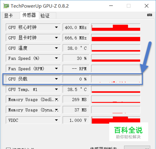 如果想查看显卡的负载率,切换到传感器选项卡,查看“GPU 负载”即可。