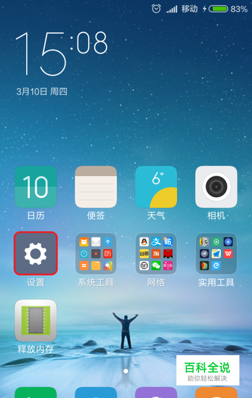 本例中想要通过共享手机已连接的WiFi实现笔记本上网,这时进入安卓手机端的设置;