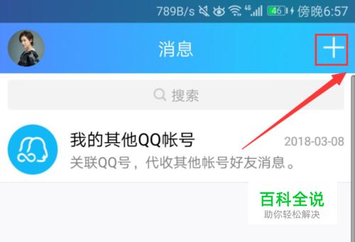 QQ面对面建群,操作起来不是很难,我们打开QQ,点上方的【+】号,如图。