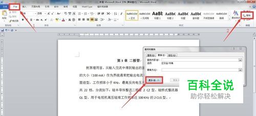 接下来我们将里面的数字格式替换为Times New Roman字体。依次打开:开始-替换,在弹出的对话框点击“更多”;切换成英文输入,在查找内容里输入“[0-9]”,勾选“使用通配符”,此时将光标放置在“替换为”编辑框内,之后点击:格式-字体,会自动弹出对话框。