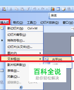 打开ppt,点击上方工具栏“插入——文本框——水平”,找到插入文本框的工具。
