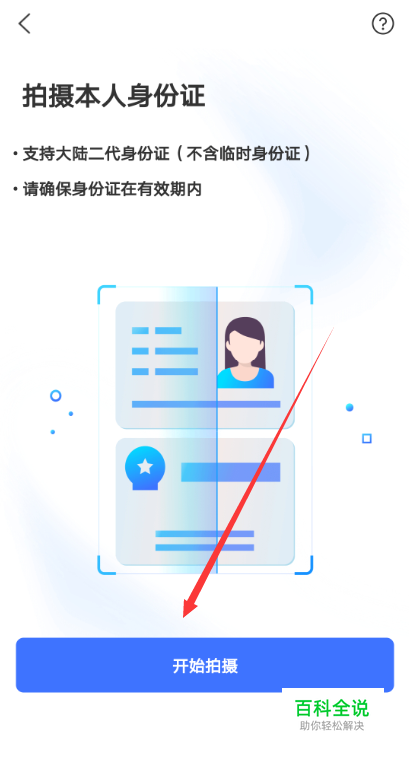 选择身份证+人脸识别后,就会弹出要求拍摄身份证,直接点击【开始拍摄】,如下图所示。