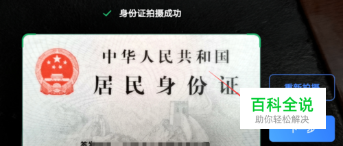按照要求,依次拍摄自己身份证的正反面,拍好后直接点击下一步,如下图所示。