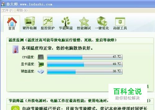 下载鲁大师并安装后,运行鲁大师软件,即可进入软件界面,并自动检测电脑硬件温度,如下图:如上图所示,我们可以很清楚的看到鲁大师为我们电脑检测出了电脑处理器(cpu)的温度