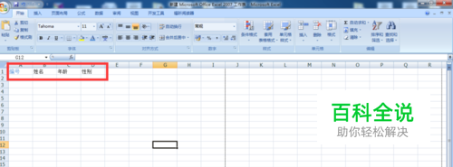 设定列标题,分别在单元格A1,B1,C1,D1中输入【编号】,【姓名】,【年龄】,【性别】;