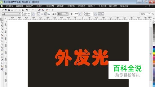 进入CDR新建画布 F8输入任意文字 如:"外发光”