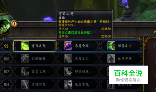第一层我们点击盲目之怒,这样在aoe放出去的时候,恶意增加恶魔之怒,再次进行输出。
