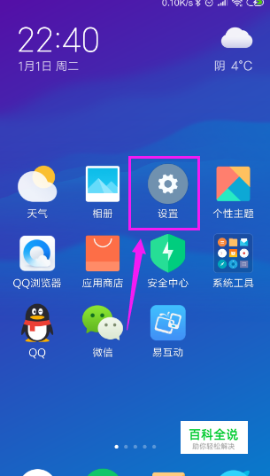 如图所示,在手机上找到设置的图标,点击打开它。