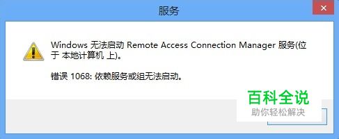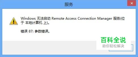 共 享网络需要用到ICS(InternetConnectionSharing)服务,而Remote Access Connection Manager服务是ICS(InternetConnectionSharing)服务所依赖的服务之一,可是常常会出现Remote Access Connection Manager服务无法启动的情况。 现象 出现错误提示: 错误1068:依赖的服务或组无法启动 错误87:参数错误 解决方法 Remote Access Connection Manager服务的启动要依赖两个服务:SSTPS(secure socket tunneling protocol service)服务、Telephony服务。而Telephony服务常处于启动状态,没有问题。问题是出SSTPS(secure socket tunneling protocol service)服务上,单独启动SSTPS(secure socket tunneling protocol service)服务时会提示:自动停止,直接启动Remote Access Connection Manager服务时又说依赖的服务不能启动。很多网友在网上搜索解决方法,什么改注册表等等,看起来很复杂,但是大多数情况下却 没有用。其中的重点在于Windows Event Log服务没有启动(设置成为手动是不行的): 把Windows Event Log服务启动并设置成为“自动”启动并启动即可。 Windows Event Log服务和这几个服务之间虽然没有依存关系,但是Windows Event Log服务是大多数服务在保证安全的情况下需要用到的。 如果无法启用,netsh winsock reset,这个命令是修复WINSOCK2,可是你把WINSOCK和WINSOCK2删除了,修复肯定无效,所以要重新安装Internet 协议。1:删除已损坏的注册表项1. 单击“开始”,然后单击“运行”。2. 在“打开”框中,键入 regedit,然后单击“确定”。3. 在注册表编辑器中,找到下列项,右键单击各项,然后单击“删除”:HKEY_LOCAL_MACHINE\System\CurrentControlSet\Services\WinsockHKEY_LOCAL_MACHINE\System\CurrentControlSet\Services\Winsock24. 在系统提示您确认删除时,单击“是”。步骤 2:安装 TCP/IP1. 右键单击网络连接,然后单击“属性”。2. 单击“安装”。3. 单击“协议”,然后单击“添加”。4. 单击“从磁盘安装”。5. 键入 C:\Windows\inf,然后单击“确定”。6. 在可用协议列表中,单击“Internet 协议(TCP/IP)”,然后单击“确定”。7. 重新启动计算机。
