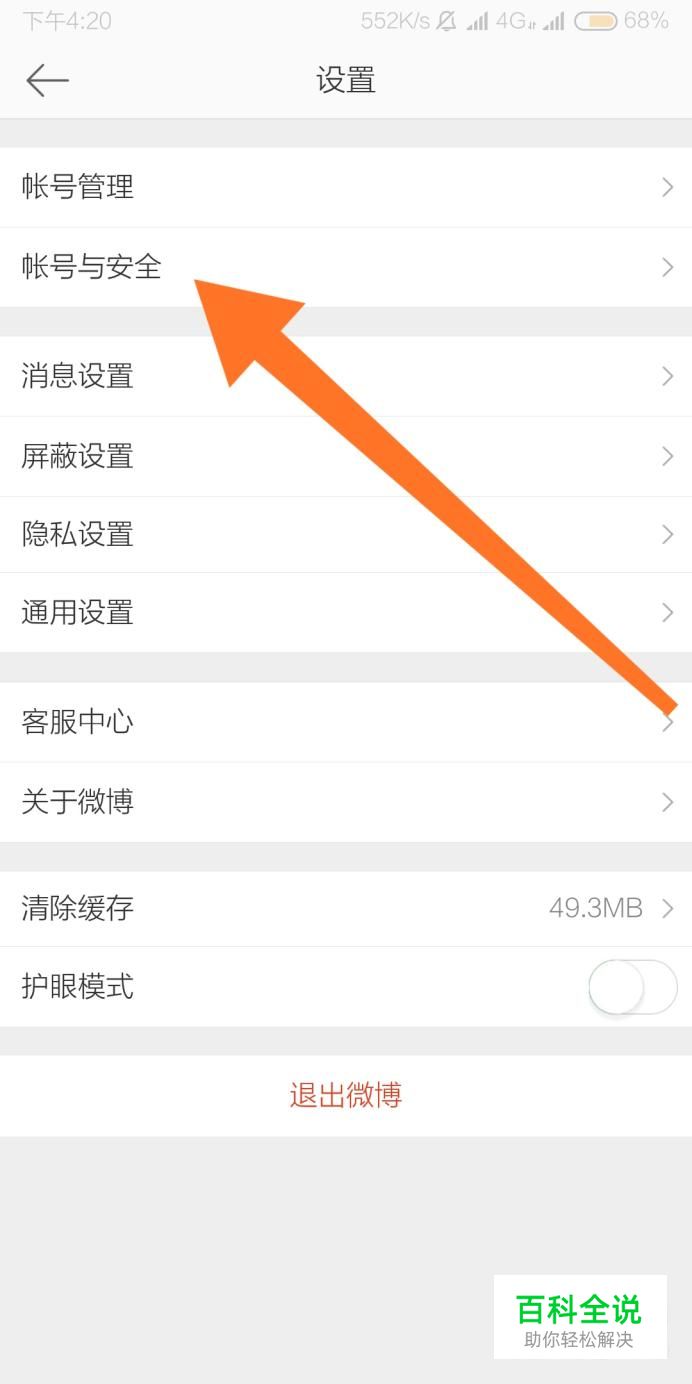 进入设置菜单页面后,再点击进入“账号与安全”设置选项。
