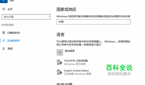 选择(区域与语言),然后点击右侧的(中文)