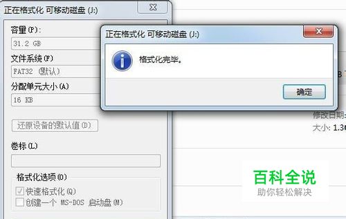 出现一个“可移动磁盘 格式化”,点击“确认“;