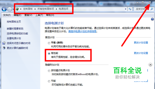 打开控制面板-----电源选项。选定为高性能,即在高性能选项前面点中,然后关闭。