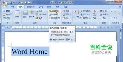 第1步,打开Word2007文档窗口,选中需要创建电子邮件超链接的文字。切换到“插入”功能区,在“链接”分组中单击“超链接”按钮,如图2011110211所示。 图2011110211 单击“超链接”按钮 小提示:用户也可以将插入条光标移动到合适的位置而无需选中文字,然后直接在“插入”功能区单击“超链接”按钮。