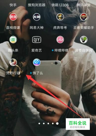 打开手机,找到荒野行动,点击并进入,如图所示。