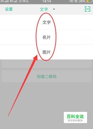 进入之后,点击图示位置的选择一种创建二维码格式,在这里小编选择“文字”,如图所示。