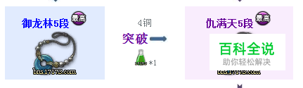 御龙林5段和仇满天5段突破至仇满天6段,御龙林项链在去御龙林地区都可以获取,仇满天项链在松岩岛击杀仇满天获得。一直合成到仇满天10段。