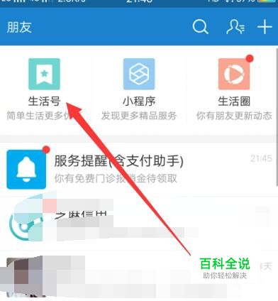进入之后,找到“生活号”,点击并进入,如图所示。