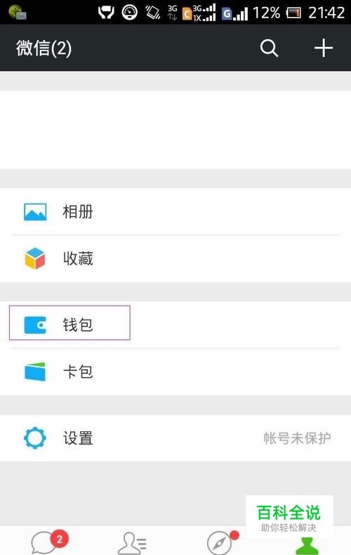 直接点击微信右下角的“我”,再点击“钱包”。