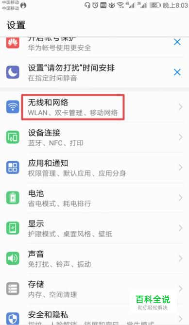 弹出的界面,我们点击无线和网络;