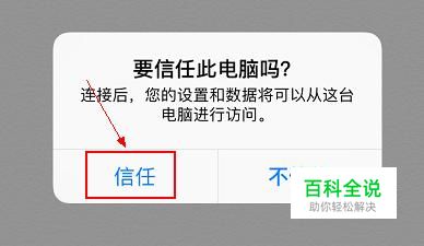 使用数据线,将iPhone手机连接到电脑上,记得在手机上点击信任,方可获取到数据。
